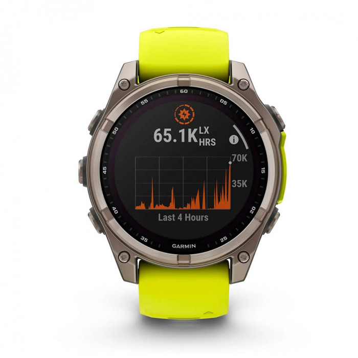 Garmin Fenix 8 Solar 47 мм – это премиальные GPS-смарт-часы нового поколения, которые сочетают инновационные технологии, выносливый дизайн и уникальную систему солнечного питания. Благодаря Power Sapphire™ стеклу со встроенной солнечной линзой он получает энергию от солнца, что уменьшает зависимость от зарядки. Это особенно ценно для спортсменов, путешественников и для тех, кто проводит много времени на открытом воздухе. Прочный титановый корпус с DLC-обработкой в оттенке Carbon Grey и яркий силиконовый ремешок в цветах Amp Yellow/Graphite подчеркивают спортивный стиль и обеспечивают комфорт в повседневном использовании.
