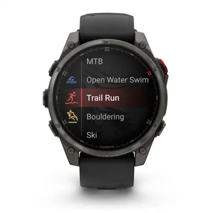 Смарт годинник Garmin Fenix 8 Pro Amoled 47 мм Sapphire Carbon Grey DLC Titanium із силіконовим чорно-сірим ремінцем (010-03198-01)