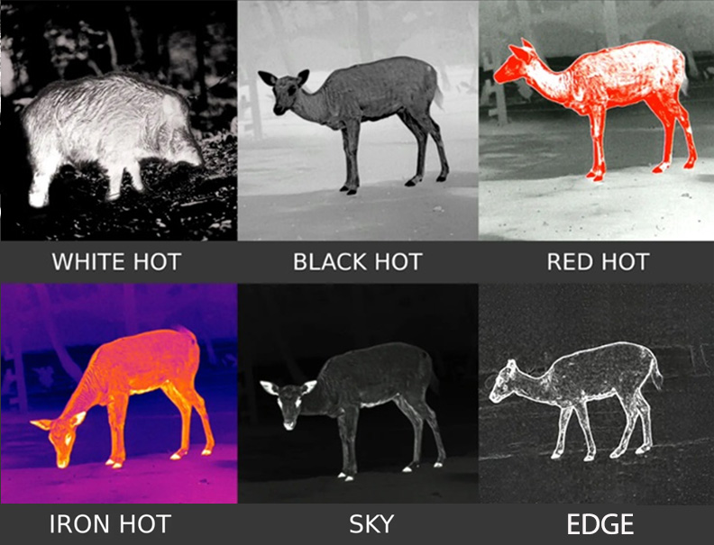 Для пошуків і спостережень на дальніх дистанціях в умовах низької видимості підійдуть монохромні палітри, такі як «Гарячий чорний», «Гарячий червоний» і «Гарячий білий», які ефективно виділяють теплові об'єкти на холодному тлі. Для тривалих спостережень на ближніх відстанях переважають м'які палітри, такі як SKY або IN-HOT, що забезпечують комфорт для очей і запобігають їх стомленню.